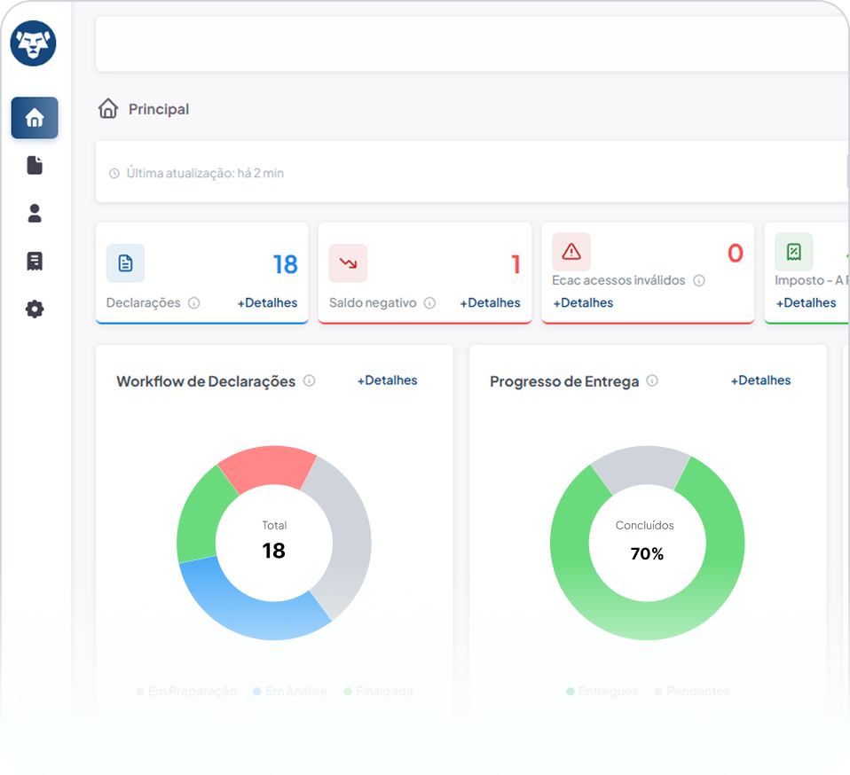Enfrente o leão com uma variedade de funcionalidades, ajudamos seu escritório a gerenciar as declarações de forma eficiente e segura.